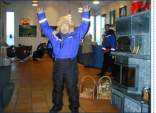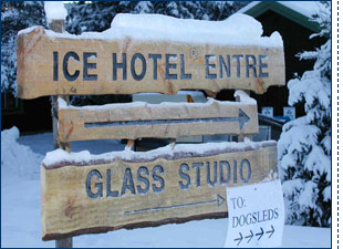 看板のしたの張り紙は「犬ぞリ」と書いてある。ホテル裏の凍りついたトーレ川の上を10頭立てぐらいの犬ぞりが走っていた。北極圏だもの。Glass studioにはアメリカ人の作家がいて仕事をしていた。.氷とガラスはなんだか良く合ってる。