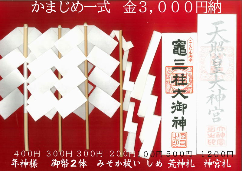 ・預かれるもの:神社関係のお札、御幣、お守、はまや、かっこめ、神棚、 しめ縄※ 等