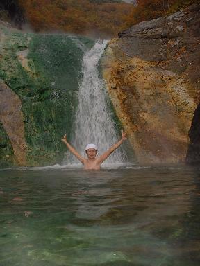 温泉になっていて入れる。とても楽しいですが、川を遡っていくのでちょっと大変。