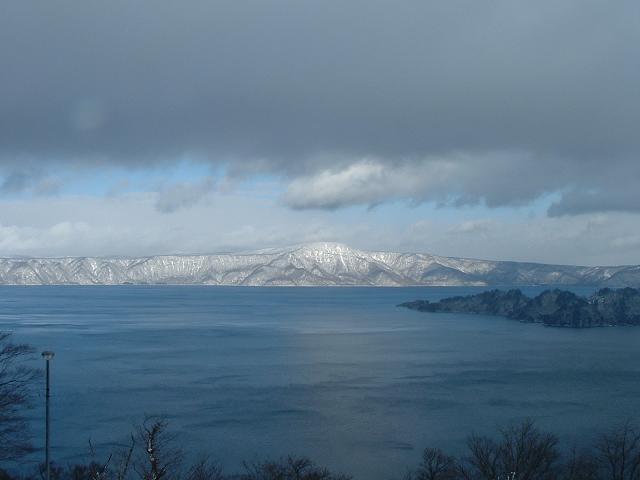 展望台への階段が雪に埋もれてました。湖は超キレイでした。