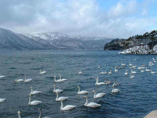 十和田湖畔の白鳥