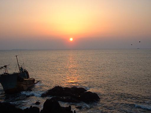 超超キレイでした。手前には座礁した?船が置き去りになってます。