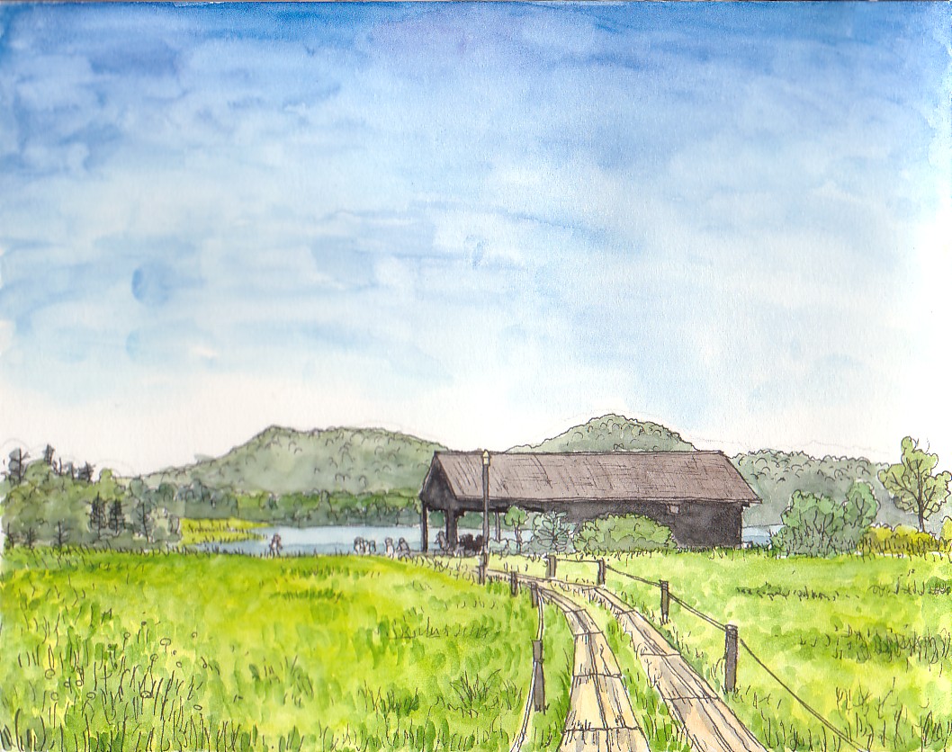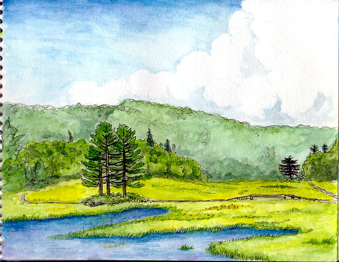 書き始めのころの作品。沼の水面と雲の表現が難しかった。