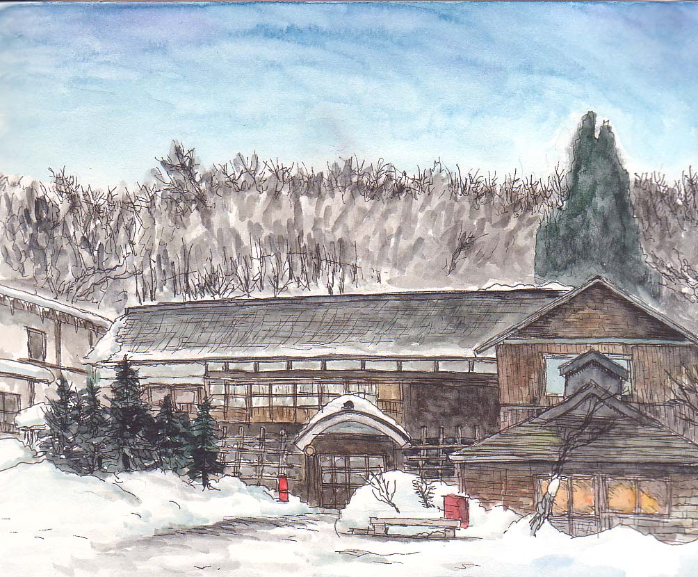 空を青空にしたり、後ろの新館を省いたり、少し脚色しますた。
