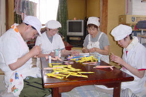紙を切る・折る・貼るなど大切な手先の訓練です。集中力も養います。 |